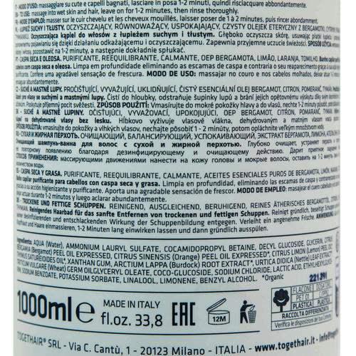 Очищающий шампунь-ванна для волос с сухой и жирной перхотью. Глубоко очищает, устраняет перхоть и препятствует ее повторному появлению благодаря дезинфицирующему и очищающему действию. Дарит приятное ощущение свежести.