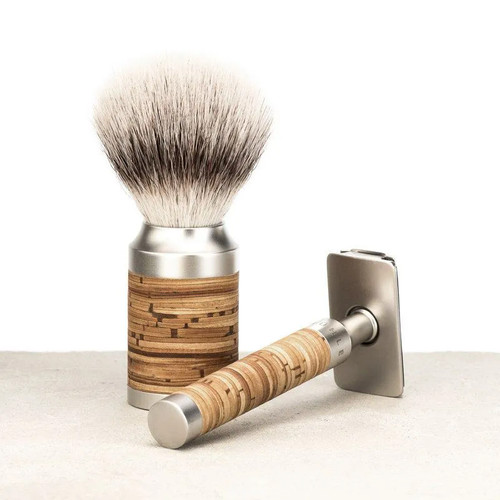 Рукоять бритвы сделана из бересты. Этот материал начал использоваться тысячи лет назад, поскольку уже тогда обеспечивал прочность и гибкость, предлагаемую синтетическими аналогами современного мира. Абстрактный рисунок поверхности бересты никогда не повторяется дважды, а его структура удивляет своим теплом и мягкостью при прикосновении. Береста чрезвычайно прочна и долговечна, не требует особенного ухода и не скользит в руках, даже будучи влажной.