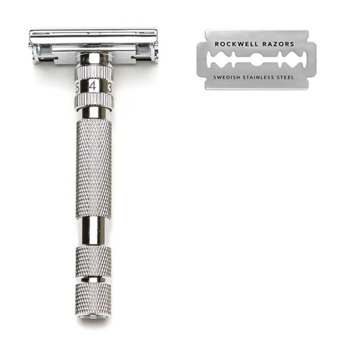 Инновационная плавно регулируемая конструкция Rockwell Model T обеспечивает совершенное, комфортное бритье, а также предотвращает раздражение и вросшие волосы. Станок оснащен единственным в своем роде, регулируемым механизмом, обеспечивающим точное, удобное бритье для любого типа кожи и длины щетины. Просто поверните диск, чтобы изменить зазор лезвия и экспозицию, контролируя комфорт и близость к коже.