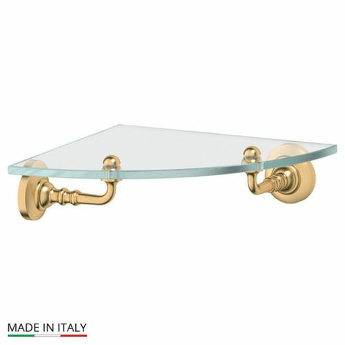 Такая полка — это изящный предмет, который украсит интерьер ванной комнаты. Его корпус выполнен из латуни — многокомпонентного медного сплава с добавлением цинка. Горизонтальное полотно аксессуара выполнено из прозрачного стекла толщиной 8 мм. Полированная кромка уменьшает вероятность образования трещин, предохраняет от порезов и обеспечивает прозрачность торца.