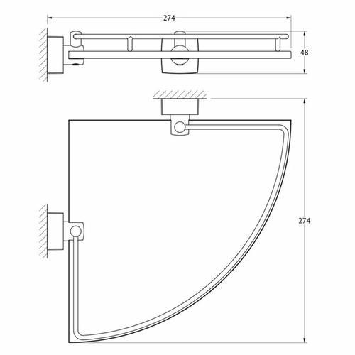 Угловая полка с держателями, ширина 28 см, матовое стекло, хром