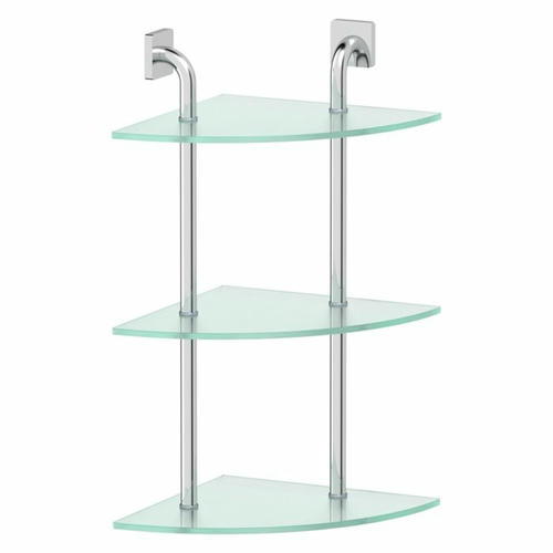 Угловая полка трёхъярусная, ширина 30 см, матовое стекло, хром