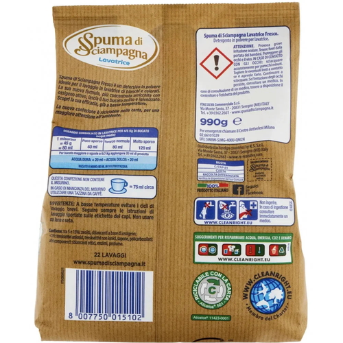 Spuma Di Sciampagna Lavatrice Fresco – это универсальный порошок, который идеально подходит для стирки как белого, так и цветного белья.