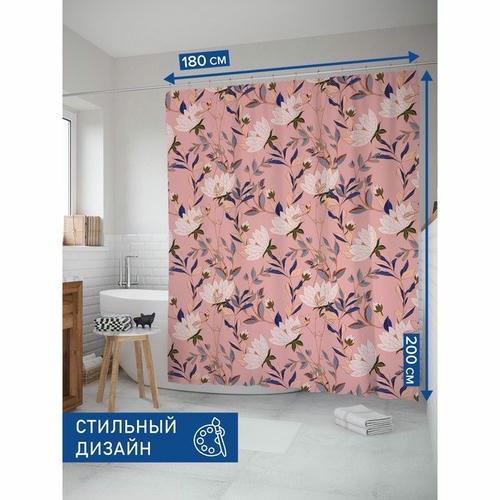 Шторка для ванной 180х200 см выполнена из мягкого и приятного на ощупь высококачественного материала «сатен» (100% полиэстер) плотностью 80 г/м2.