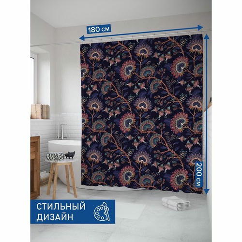 Шторка для ванной 180х200 см выполнена из мягкого и приятного на ощупь высококачественного материала «сатен» (100% полиэстер) плотностью 80 г/м2.