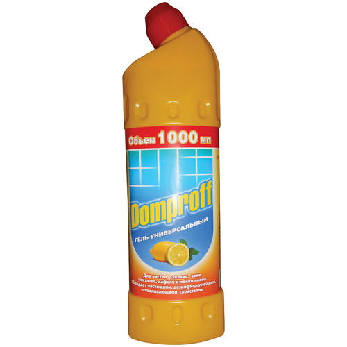 Domproff – Средство универсальное жидкое для ухода за туалетом, ванной комнатой, кухней: чистит кафель, сантехнику, полы. Обладает дез. и отбеливающим эффектом.