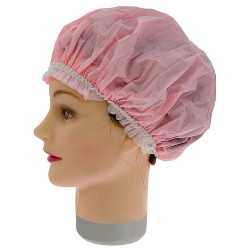 Пластиковая шапочка розовая для душа с резиновым шнурком