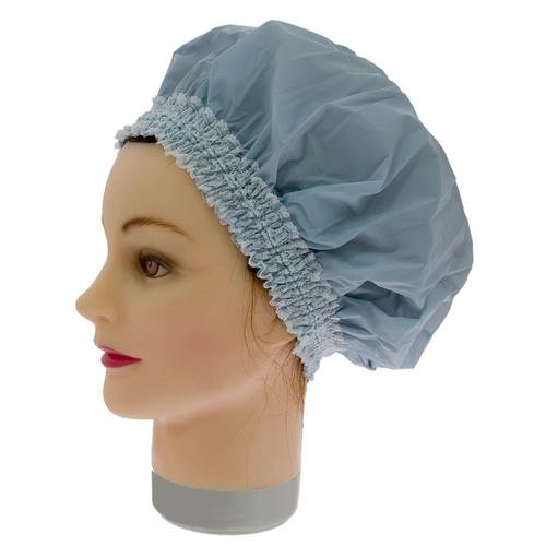 Пластиковая шапочка голубая для душа с широкой эластичной лентой