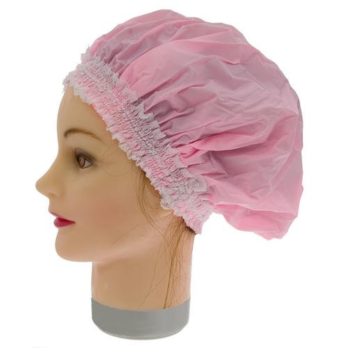 Пластиковая шапочка розовая для душа с широкой эластичной лентой