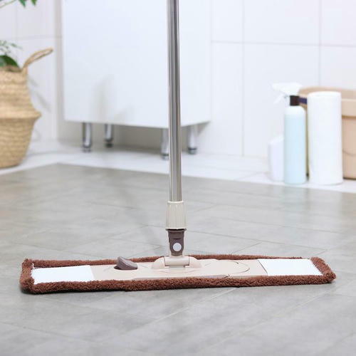 Швабра для мытья пола плоская Доляна, телескопическая стальная ручка 77-127 см, насадка из микрофибры 56x17 см