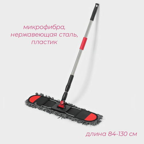 Швабра для мытья пола плоская Доляна, насадка из микрофибры 62×13 см, стальная телескопическая ручка 84-130 см