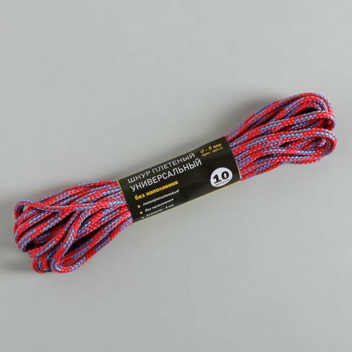 Шнур плетёный универсальный ПП, d=5 мм, 20 м, цвет МИКС