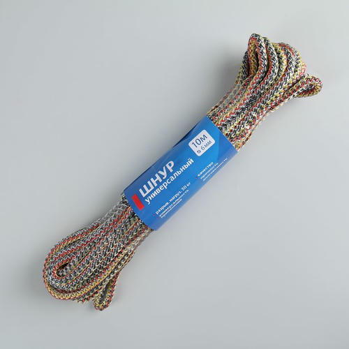 Шнур универсальный с сердечником ПП, d=8 мм, 10 м, цвет МИКС