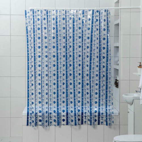 Пластиковые занавески для душа — несомненные лидеры по популярности. Хозяйки всего мира отдают им предпочтение из-за низкой стоимости и многообразия расцветок. Штора для ванной «Морская синева» демонстрирует строго выдержанный баланс между декоративностью и функциональностью.