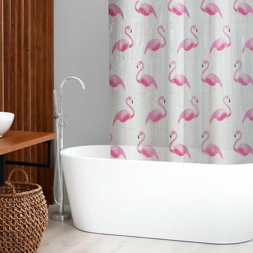 Штора для ванной комнаты SAVANNA «Фламинго», с люверсами, 180x180 см, PEVA