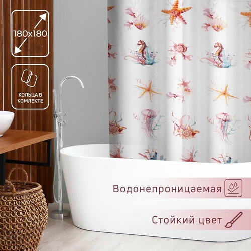 Штора для ванной «Посейдон», 180x180 см, полиэтилен, цвет белый