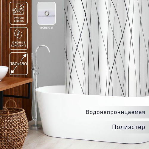 Штора для ванны Доляна «Моно», 180×180 см, полиэстер