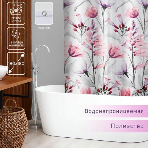 Штора для ванны Доляна «Нежность», 180×180 см, полиэстер