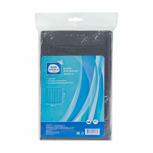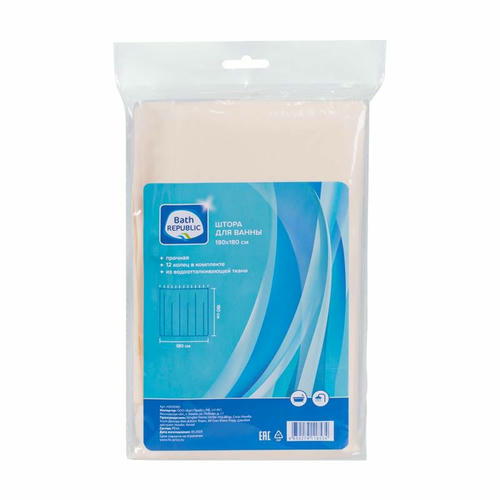 Штора для ванны, Bath Republic, из прочной водоотталкивающей ткани – прекрасный выбор для дома и дачи. Подходит для душевых. В набор входят 12 колец. Размер: 180х180 см. Состав: PEVA. Товар представлен в ассортименте