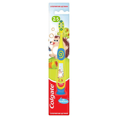 CЕрия детских зубных щеток COLGATE специально разработана для вашего ребенка. Она идеально подходит для развития навыков гигиены полости рта, через которые проходит любой малыш, а благодаря яркому, привлекательному дизайну зубных щеток ежедневная чистка зубов станет удовольствием для вашего ребенка. зубная щетка COLGATE для детей 2-5, супермягкая предназначена для бережной чистки молочных зубов. Маленькая овальная головка предназначена для комфортной чистки. Удобная ручка с упором большого пальца не скользит, обеспечивая лучший контроль. Также у щетки есть присоска для удобного хранения. Яркие персонажи на ручках обязательно понравятся вашим детям!.