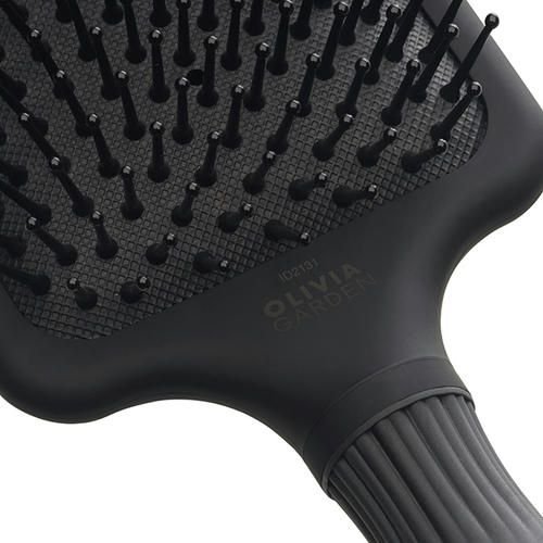 Щетка со штифтами из термостойкого нейлона на пневматической подушке. Наружные кончики нейлоновых щетинок закруглены для бережного соприкосновения с кожей головы. Керамическое покрытие щетки и применение технологии NanoThermic помогает справиться с наэлектризованностью волос и способствует равномерному распределению тепла по поверхности щетки.