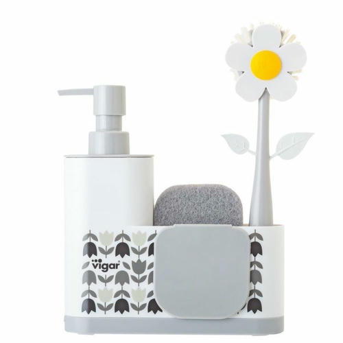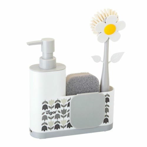 Щётка для мытья посуды Flower Power, в комплекте с губкой и дозатором на подставке