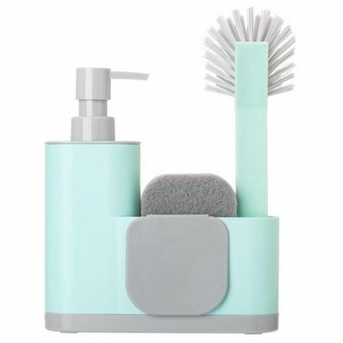 Щётка для мытья посуды Rengo, в комплекте с губкой и дозатором на подставке