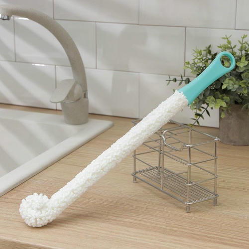 Ёршик для мытья посуды отлично удаляет загрязнения. Благодаря эргономичной форме можно придать нужный изгиб, он не деформируется со временем и устойчив к бытовой химии и моющим средствам. Не привлекает бактерии и препятствует образованию грибка.