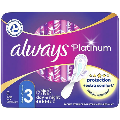 Always Platinum более комфортны (по сравнению с Always Ultra) благодаря тысячам микроподушечек и новым, мягким как шелк крылышкам. Они также обеспечивают лучшую защиту (по сравнению с Always Ultra) благодаря защитным боковым барьерам и ультравсасывающему внутреннему слою, который запирает влагу внутри.