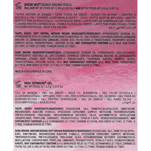 Состав набора: Anastasia Beverly Hills Dipbrow Gel (мини) – Гель для бровей, 2.5 ml + Anastasia Beverly Hills Brow Wiz – Карандаш для бровей, 0.85 g + Anastasia Beverly Hills Brow Wiz – Карандаш для бровей (мини), 0.03 g