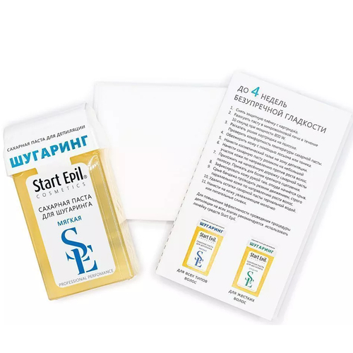 Мягкая паста для сахарной депиляции линии применяется преимущественно для обработки больших ровных зон (руки, бедра, голени) с помощью бандажей, рабочай температура — 37°С.