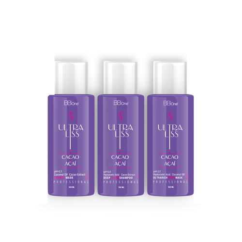 Набор для прогрессивного кератинового выпрямление и уплотнения волос. Ultra Liss Cacao&Acai вобрал в себя все наиболее сильные и питательные ингредиенты. Предназначен для сильно вьющихся, жестких, кудрявых, мятежных и этнических волос, а также для волос смешанного типа. Подходит для окрашенных и осветленных волос низкой, средней и высокой степени повреждения. Эффективно и сильно выпрямляет, питает и укрепляет волосы, устраняет пушистость, придает блеск и фиксирует укладку.