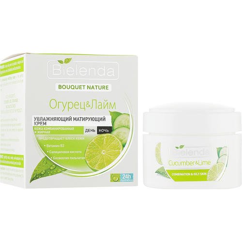 Нежная и свежая кожа без единого изъяна — это легко достижимый результат благодаря использованию крема для лица Bouquet Nature Cucumber & Lime Moisturizing Mattifying Cream польского бренда Bielenda! Косметический продукт с легкой консистенцией хорошо впитывается, не оставляя пленки, что делает его максимально комфортным для ежедневного использования.