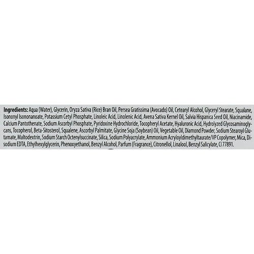 Бархатистая, кремовая формула сочетает в себе ценные, безопасные для кожи липиды, способствуя восстановлению надлежащего гидролипидного барьера эпидермиса, а также оживлению и разглаживанию кожи; со скваланом, обеспечивающим оптимальное увлажнение, и с алмазной пылью, действующей как осветляющий лифтинг-эффект – улучшает внешний вид, придавая коже сияние и молодость.