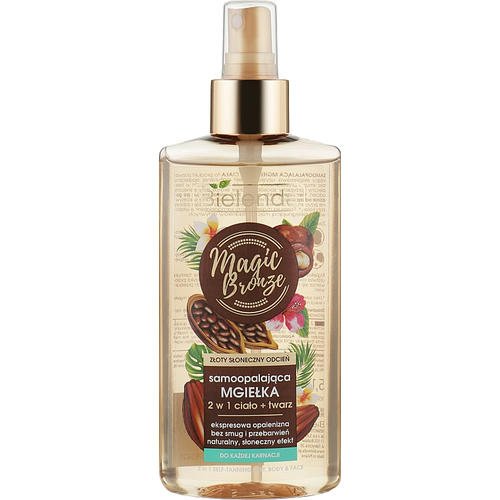 Легкий, ровный, бронзовый оттенок загара на вашей коже… Разве не о таком эффекте вы мечтали? Не всегда есть возможность улететь в теплые страны для получения золотистого оттенка кожи. Бьюти-продукт для лица и тела от Bielenda подарит вам естественный, красивый загар без разводов и пятен. Если вы желаете достичь эффект «поцелуя солнца», значит вам не обойтись без спрея – автозагара с содержанием натурлаьных компонентов. Продукт 2 в 1 Magic Bronze также питает кожу, защищает от негативного воздействия внешних факторов и создает эффект красивой, загорелой кожи.