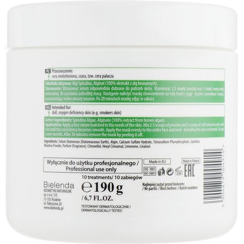 Увлажнение, устранение признаков старения, осветление пигментных пятен, омоложение кожи, эффект лифтинга — такое действие обеспечивает альгинатная маска со спирулиной, изготвленная специалистами известного польского бренда Bielenda Professional. Косметическое средство может применяться как в условиях салона красоты, так и для домашнего ухода за кожей лица.