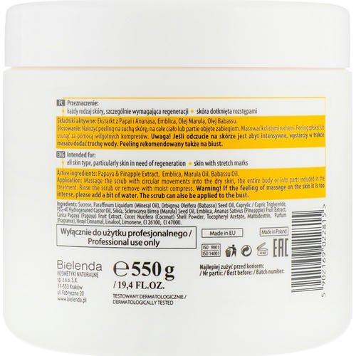 Восстанавливающий скраб Bielenda Professional Body Program Resenerating Body Scrub поможет провести эффективную пилинговую процедуру, сделав кожу идеально гладкой, мягкой и нежной. Деликатная формула средства бережно удаляет ороговевшие частицы и очищает эпидермис от загрязнений, выводит вредные токсины и оказывает мощный тонизирующий эффект, способствуя устранению растяжек и «апельсиновой корки».
