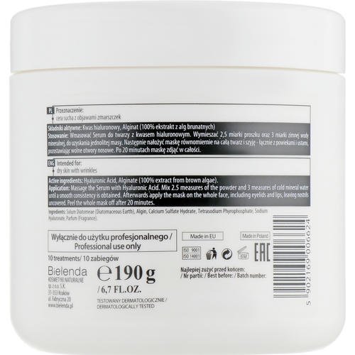 Альгинатная маска для лица с гиалуроновой кислотой Bielenda Professional Face Algae Mask with Hyaluronic Acid подойдет женщинам с любым типом кожи. Это профессиональный продукт, совершенно безопасный для здоровья. Он интенсивно увлажняет, восстанавливаетповрежденные клетки, насыщает полезными микроэлементами. Средство устраняет ощущение усталости и стянутости. Оно активно борется с мелкими морщинками, делает кожу упругой и подтянутой, наполняет ее здоровьем и сиянием.