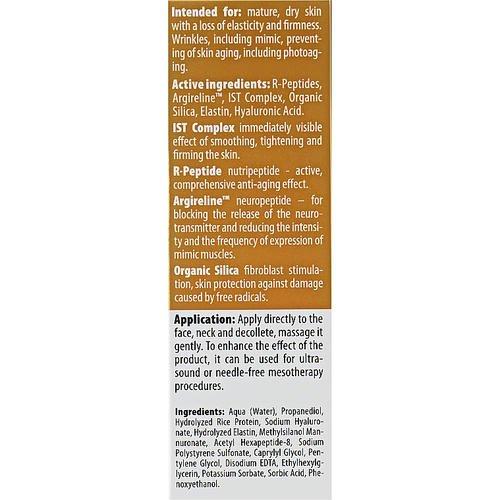 Активные ингредиенты: R-пептиды, Argireline ™, комплекс FP, органический кремнезем, эластин, гиалуроновая кислота.