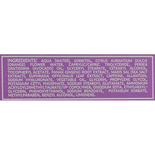 - – действие кофеина и женьшеня стимулирует микроциркуляцию крови, снимает отечность, устраняет темные круги под глазами, тонизирует и оказывает антиоксидантное влияние;