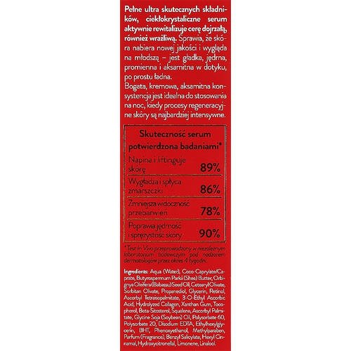 Жидкокристаллическая сыворотка, содержащая ультраэффективные ингредиенты, активно оживляет зрелую и чувствительную кожу. Делает кожу новой и молодой – она __гладкая, упругая, сияющая и бархатистая на ощупь, просто прелесть. Насыщенная, кремовая, бархатистая текстура идеальна для использования в ночное время, когда регенеративные процессы в коже наиболее интенсивны.
