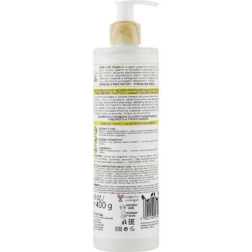 Шампунь для жирных волос от популярного польского бренда Bielinda бережно, но эффективно очищает кожу головы и локоны от кожного жира и загрязнений. Его формула состоит на 100% из активных веганских компонентов, которые деликатно воздействуют на кожный покров головы, не вызывая раздражений и сухости. Благодаря тщательно подобранному составу это уходовое средство значительно улучшает состояние прядей, делает их мягкими и послушными.