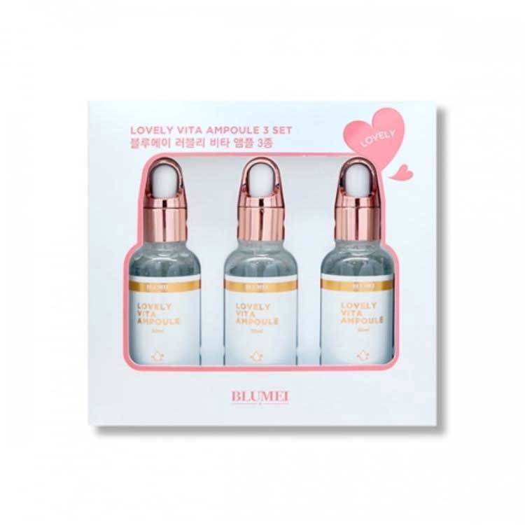 BLUMEI LOVELU VITA AMPOULE 3SET (30ml+30ml+30ml) – обеспечивает тусклую и огрубевшую кожу витаминами, которые придают жизненную силу и выравнивают тон кожи. Это косметика двойного назначения для отбеливания и разглаживания морщин. Он помогает успокоить нарушенную текстуру кожи и уменьшить отходы кожи, выделяя продукты жизнедеятельности.