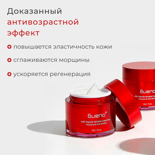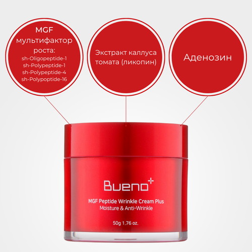 Пептидный увлажняющий омолаживающий крем идеально подойдет коже с первыми возрастными изменениями склонной к покраснениям и воспалениям. Он повышает упругость и эластичность тканей, успокаивает, выравнивает тон и мягко осветляет поверхностную пигментацию и следы постакне. Комплекс MGF включает в себя несколько факторов роста и пептидов, которые воздействуют на фибробласты, стимулируя процесс обновления кожи и синтез коллагена, способствуют регенерации клеток, заживлению повреждений и правильному росту капилляров, что в свою очередь улучшает микроциркуляцию. Как результат, сглаживаются морщины, уменьшаются покраснения и воспаления, кожа становится более упругая и сияющая.