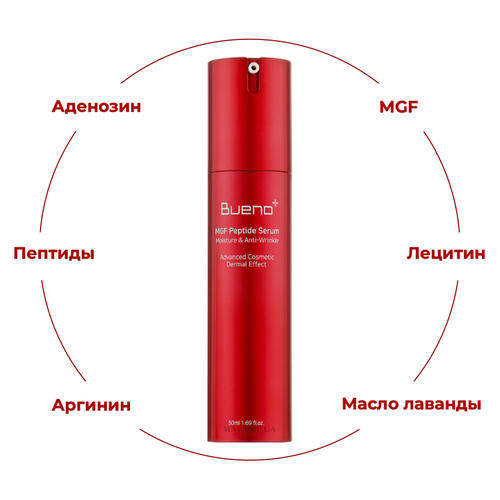 В составе комплекс MGF включает в себя несколько факторов роста и пептидов, которые воздействуют на фибробласты, стимулируя процесс обновления кожи и синтез коллагена, способствуют регенерации клеток, заживлению повреждений и правильному росту капиляров, что в свою очередь улучшает микроциркуляцию. Экстракт Томата (Ликопин) обладает сильным антиоксидантным действием, помогает в борьбе с фотостарением, замедляет возрастные изменения, регенерирует кожу и стимулирует выработку коллагена. Аргинин улучшает защитные функции кожи, регенерацию и микроциркуляцию. Аллантоин — эффективный успокаивающий ингредиент, обладает противовоспалительным действием. Масло лаванды регулирует работу сальных желез, успокаивает, снижает чувствительность, помогает бороться с воспалениями и укрепляет кожу.