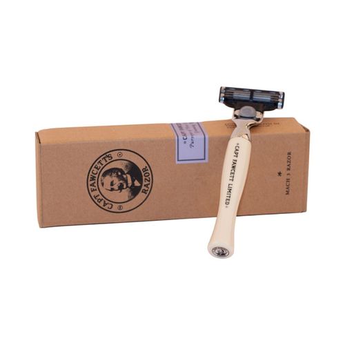 Captain Fawcett Finest Hand Crafted Safety Razor – эта бритва обеспечит великолепное бритье. Изготавливается вручную. Ручка из слоновой кости с хромированным воротником и основанием.