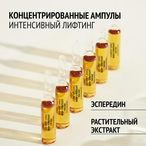 Аккуратно откройте ампулу с помощью колпачка-дозатора, нанесите на кожу с помощью аппликатора. Для интенсивного результата, наносите содержимое одного флакона на грудь, живот и руки один раз в неделю в течение 4 недель. Массируйте мягкими круговыми движениями до полного впитывания. Завершите процедуру нанесением лифтинг сыворотки для кожи груди Body Strategist. МЕРЫ ПРЕДОСТОРОЖНОСТИ Не наносить на поврежденную кожу. Избегать контакта с глазами. Мойте руки после использования. Проконсультируйтесь с врачом перед использованием, если вы беременны или кормите грудью. Только наружное применение.