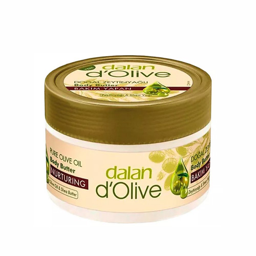 Крем для тела масло Олива разработан специально для экстренной подпитки кожи. Благодаря содержанию в составе крема фунгицидов, растительных и эфирных масел, масла Ши, олиголинолиевых кислот, Омега 6 и 9, витаминов А, Е, F и полезных для кожи экстрактов лекарственных растений, крем-масло Олива производства Dalan, обеспечивает мгновенную защиту кожи от воздействия агрессивных внешних факторов, а также насыщение кожи полезными веществами. За счет низкой молекулярной массы компонентов крема, уже через несколько секунд после нанесения крема-масла на тело, кожа выравнивается и начинает сиять изнутри. Крем-масло Олива обеспечивает экстренное питание кожи, а при регулярном применении способствует восстановлению гидролипидного слоя и улучшению общего состояния клеток дермы. Благодаря уникальному натуральному составу, крем-масло Олива помогает омоложению и восстановлению кожи. Уход за кожей вместе с увлажняющим кремом для тела Олива становится настоящим удовольствием. Если вам необходим крем-масло универсальный доя всей семьи, то турецкий крем-масло Олива окажется лучшим решением. Эко-косметика Dalan максимально бережно заботится о вашем теле. Баттер для тела питательное с оливковым маслом и маслом ши обеспечивает 24 часа увлажнения и питания кожи. Турецкое масло оливы – питает, защищает и смягчает кожу. Масло ши – уникальные увлажняющие свойства: через час после нанесения достигается максимальный увлажняющий эффект, который сохраняется более восьми часов. Крем баттер для тела эффективно устраняет раздражение кожи, насыщает ее витаминами, быстро впитывается и не оставляет неприятного ощущения жирности.