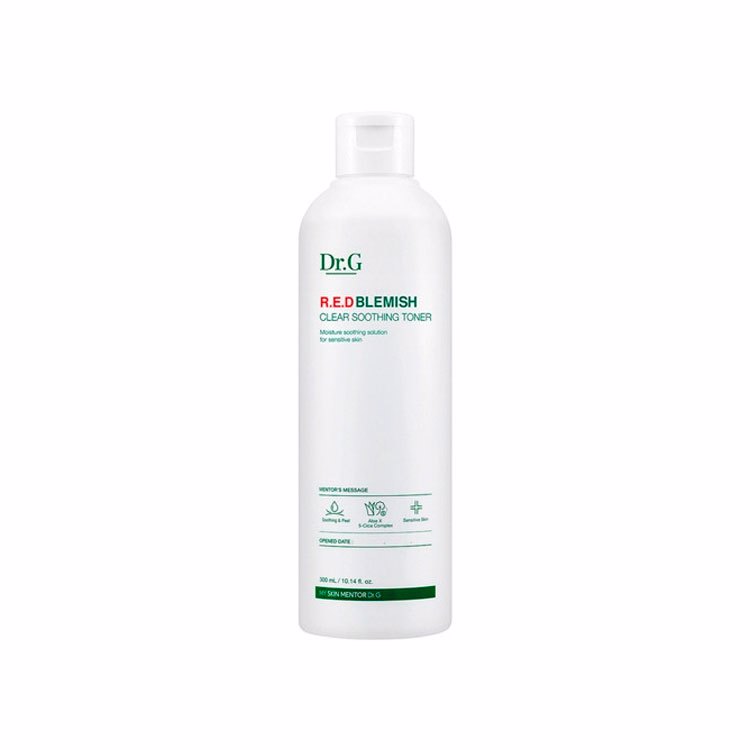 DR.G R.E.D BLEMISH CLEAR SOOTHING TONER (200ml) успокоит раздраженную и поврежденную кожу и подготовит кожу к дальнейшим этапам увлажнения. Тоник создает мягкий пиллинг-эффект, бережно очищает кожу от омертвевших частичек, стимулирует обновление и регенерацию кожи, улучшает кровообращение и обменные процессы. Содержит комплекс экстрактов центеллы азиатской, который эффективно успокаивает кожу, снимает раздражения и покраснения. Экстракт алоэ вера активно увлажняет и питает кожу, оказывает мощное целебное и антибактериальное воздействие.