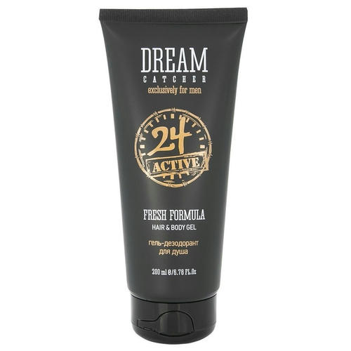 Dream Catcher Fresh formula 24 active Hair & body – дезодорант и гель для душа. Содержит экстракт из плодов граната, который поддерживает естественный уровень гидратации волос, придаёт им красивый блеск. Натуральный экстракт чабреца (тимьяна) восстанавливает здоровую микрофлору кожи головы, предупреждая образование перхоти. Морская соль насыщает кожу тела и головы необходимыми микро- и макроэлементами. Гель эффективно очищает тело и волосы, сохраняя свежесть на протяжении 24 часов.